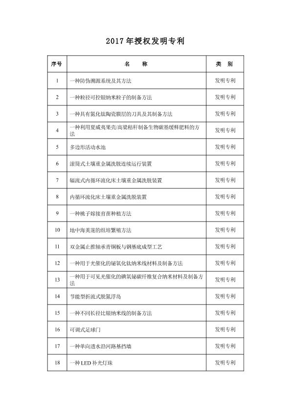 2017年授权发明专利