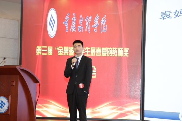 通过推介者的精彩推介,刘娴丽、贺方云、熊小伟、向晋辉、齐效成、袁才荣、魏良福、廖长荣、曹川川、韩永青10位教师获得“金果源”学生最喜爱的教师奖;郑小芳、张长亮、张 雪、郑士远、杨树成5位教师获“金果源”学生最喜爱的教师提名奖;朱红玲、周明东、董晨霖、韦涅拉、邓 怡5位同学获得最佳推介奖。