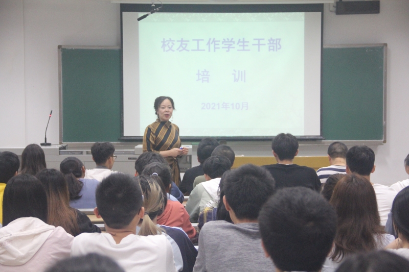 2021年10月9日,校友工作学生干部培训会在知津楼D303成功举行。校友办主任谢华琳,彭涛、曾一峰老师,校团委、各二级学院校友工作部负责人,以及第六届校级校友工作部干事,共七十余人参与。