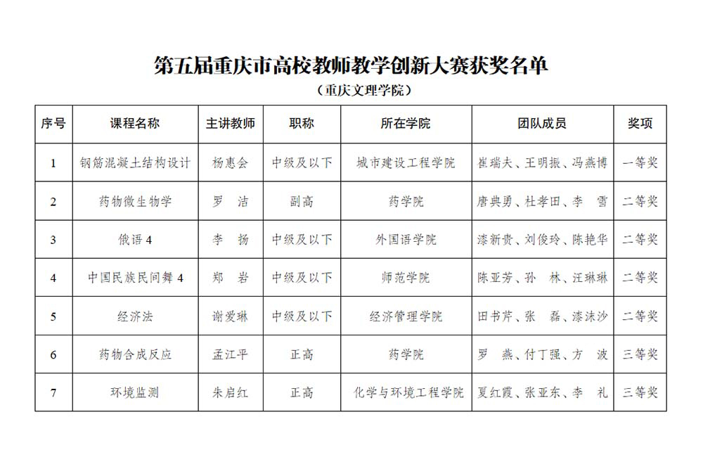 近日,由重庆市教育委员会主办,重庆市高等教育学会、重庆科技大学承办的第五届重庆市高校教师教学创新大赛落幕。beat365官网推荐9名教师(团队)参赛,7名教师(团队)