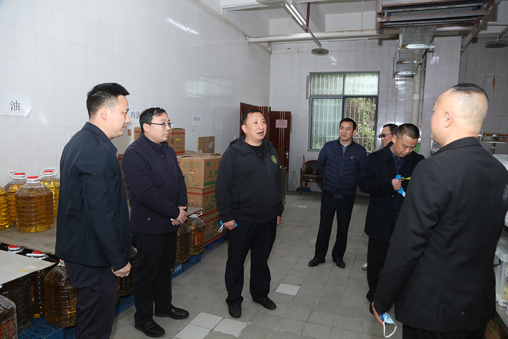 4月1日中午,校长黄伟九带队到红河B区食堂检查校园食品安全,副校长王东强、基建后勤处相关负责人陪同检查。