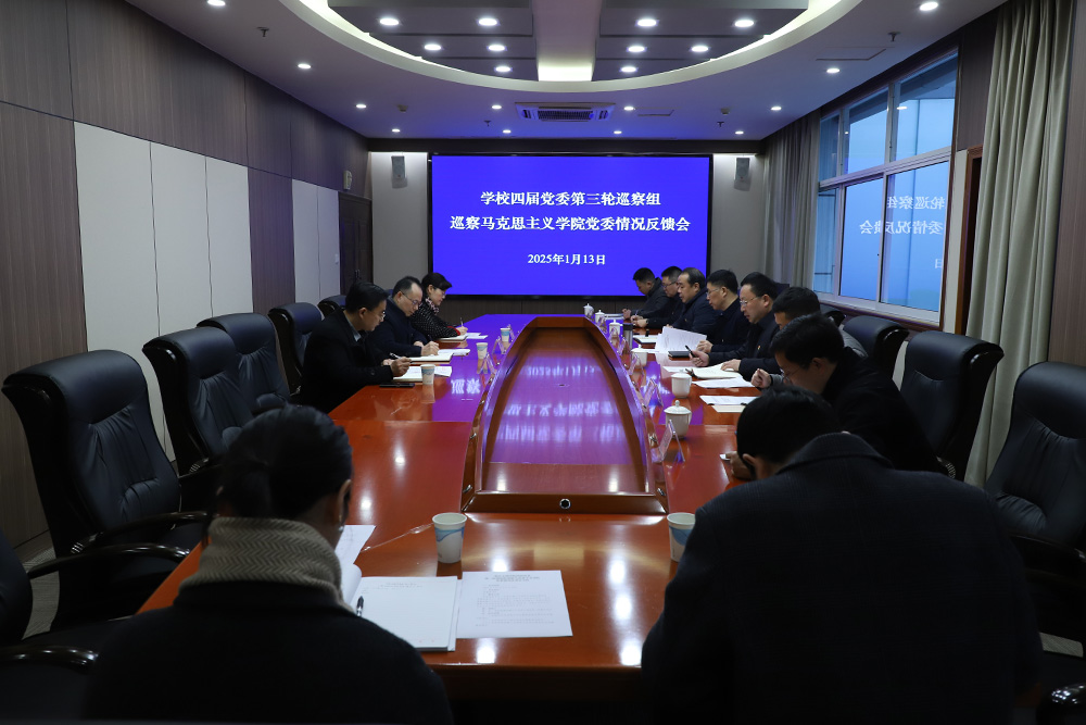 1月13日上午,学校四届党委第三轮巡察组向马克思主义学院党委书记、智能制造工程学院党委书记的情况反馈会在恪勤楼504会议室召开。学校党委书记、党委巡察工作领导小组组长蔡家林出席会议并讲话,学校纪委书记、监察专员、党委巡察工作领导小组副组长罗茂出席会议,学校党委常委、巡察办主任黎志主持会议。