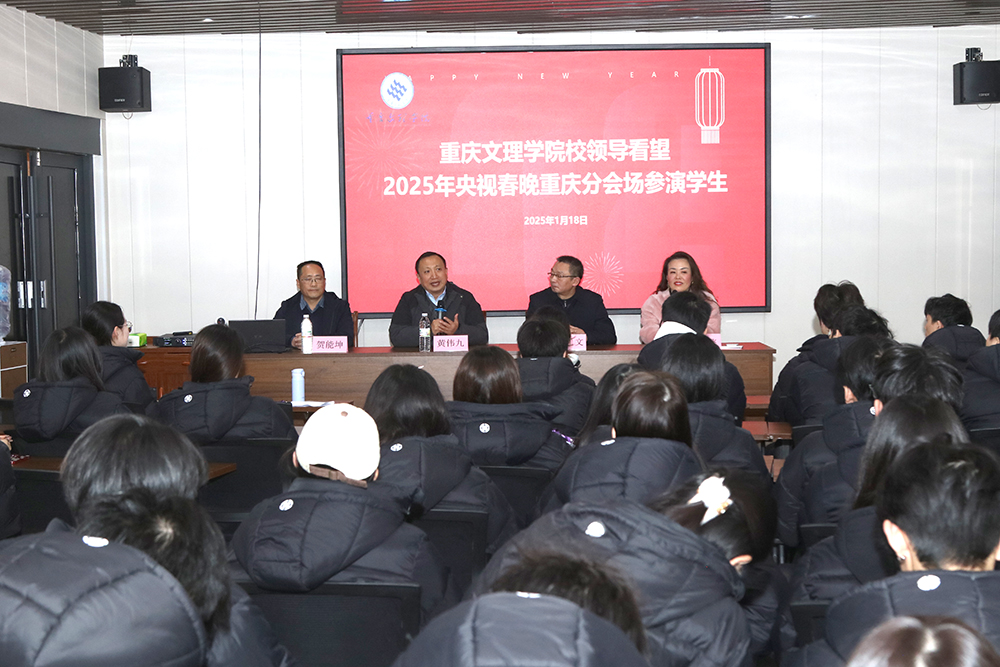 1月18日,学校党委副书记、校长黄伟九率队看望慰问beat365官网参加2025央视春晚重庆分会场演出学生。