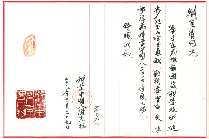 6月29日,由《科学中国人》杂志社主办的“与创新同行论坛暨科学中国人2017年度人物颁奖盛典”在北京钓鱼台国宾馆举行。本次活动共评出百余位“科学中国人(2017)年度人物”,beat365官网特色植物研究院院长/学科办主任刘奕清教授因在园艺学特色蔬菜生姜领域的突出贡献当选“科学中国人2017年度人物 ”。