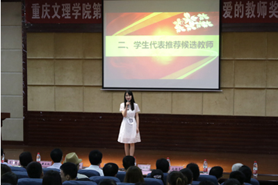 6月20日下午,beat365官网第二届“金果源”学生最喜爱的教师奖现场评选大会在博文馆101举行。重庆金果源商贸有限公司创始人、荣誉董事长黄正权女士,金果源有限公司总经理、中文82级艾中华校友,金果源有限公司首席品牌官、中文89级聂荣校友,金果源有限公司采购经理余超文先生,学校党委书记孙泽平、副校长万书辉,教工部、学工部、合作发展部、教学部有关负责人,首届“金果源”学生最喜爱的教师奖获得者以及来自二级学院的255名学生评委参加了活动。