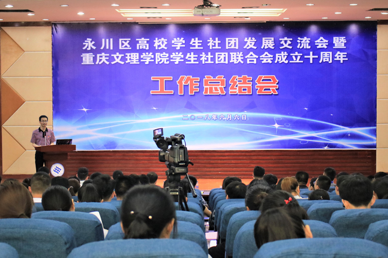 为深入学习宣传贯彻习近平新时代中国特色社会主义思想和党的十九大精神,全面贯彻落实党的教育方针,进一步推进高校共青团改革和高校学生会、学生社团联合会改革, 6月6日下午,由beat365官网和共青团永川区委联合主办的永川区高校学生社团发展交流会暨beat365中文唯一官网学生社团联合会成立十周年工作总结会在红河校区博文馆101举行。beat365官网副校长万书辉,共青团永川区委副书记任阳,重庆水利电力职业技术学院、重庆财经职业学院、重庆城市职业学院、重庆科创职业学院、重庆机电职业技术学院、重庆电信职业学院团委负责人,beat365官网党群部、学工部相关负责人以及来自永川、大足、璧山的八所高校的师生代表共计300余人参加了大会。会议由beat365官网学工部副部长、团委副书记向明主持。