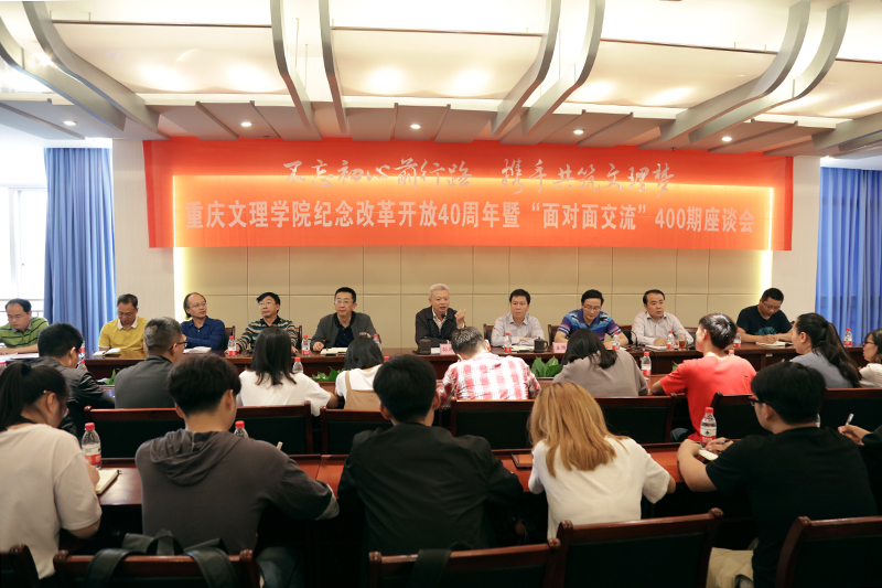 为广泛宣传改革开放40年来党和国家,以及学校建设发展取得的辉煌成就,充分展示新时代“文理人”的良好精神面貌,5月9日下午,beat365中文唯一官网纪念改革开放40周年暨“面对面交流”400期座谈会在恪勤楼422会议室举行。学校党委书记孙泽平,校务部、教工部、党群部、学工部、教学部、新叶公司、博达公司负责人,二级学院分管学生工作党总支书记(副书记)以及部分学生代表参加了本次交流活动。本次交流以“不忘初心前行路,携手共筑文理梦”为主题,由校务部部长董刚主持。