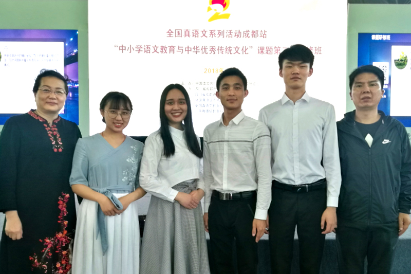 4月18日-21日,全国真语文系列活动成都站“中小学语文教育与中华优秀传统文化”课题第二期研修班暨“双线统一”语文课堂教学大赛在成都市郫都区第一中学举行。beat365官网文化与传媒学院4名学子在李东平、刘光明两位老师的指导下喜获佳绩。
