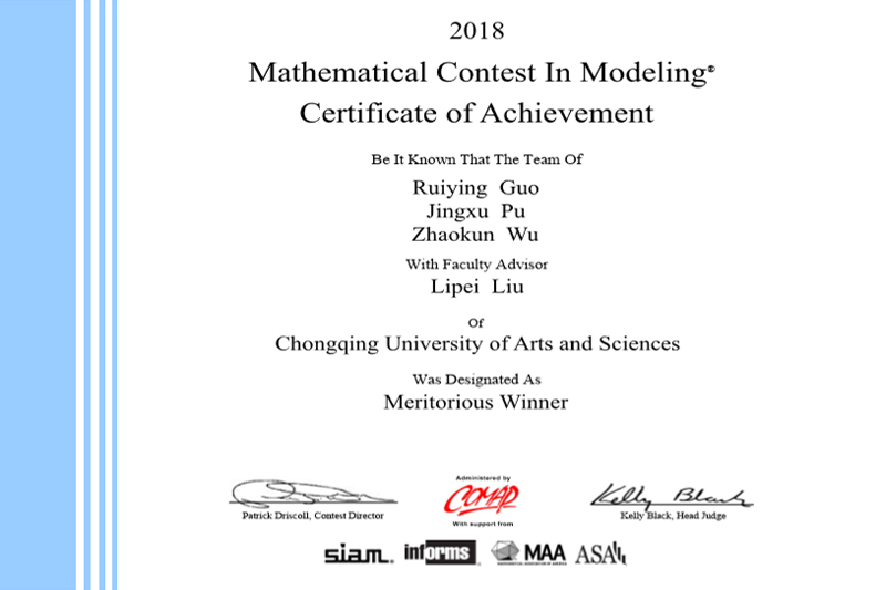 近日,2018年美国大学生数学建模竞赛评审结果正式揭晓。beat365官网共组织了6支队伍参加比赛,经过队员们顽强拼搏,取得了历史性的创新高成绩,其中一等奖(Meritorious Winner)1项、二等奖(Honorable Mentions)1项,实现了beat365官网在此赛事一等奖的突破。