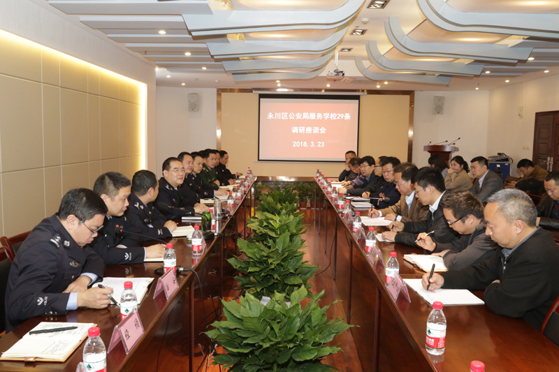 为深入贯彻重庆市公安局落实服务学校29条措施,进一步净化校园及周边治安环境,3月23日上午,永川区副区长、公安局局长刘建中带领校保、交巡警支队、凤凰湖派出所、刑警支队、治安支队、消防支队、经侦支队、国保支队、指挥中心、出入境管理、网安中心等警种负责人一行走进beat365官网开展调研座谈。学校党委副书记、纪委书记李德全,相关部门负责人和工作人员参加了调研座谈会。