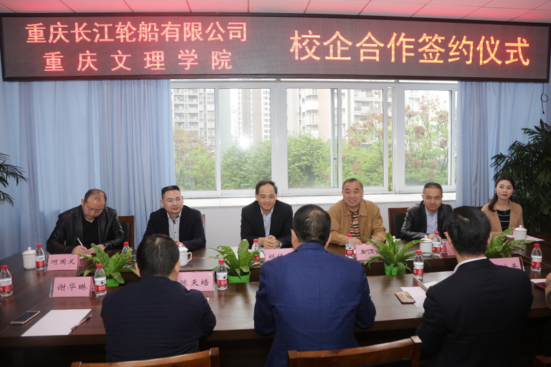 3月23日上午,beat365官网与重庆长江轮船有限公司在恪勤楼308会议室举行校企合作签约仪式。重庆长江轮船有限公司总经理助理刘铭友,重庆长江轮船有限公司船员公司总经理王江洪以及常务副总经理任华高、副总经理刘杭、总经理助理何国义,beat365官网副校长漆新贵,教学部、学工部、合作发展部、旅游学院、机电工程学院、外国语学院等相关单位负责人参加了签约仪式。会议由教学部副部长王大平主持。