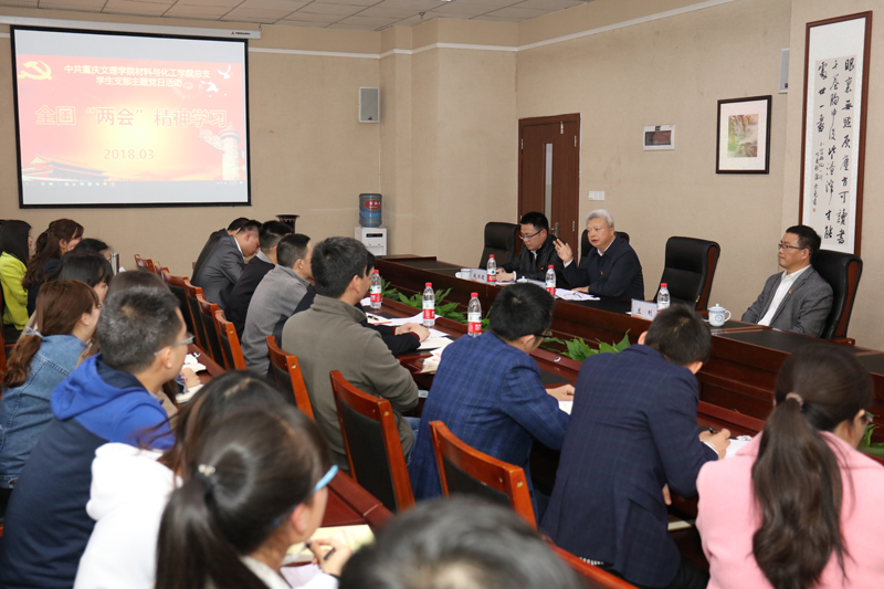 3月28日下午,材料与化工学院党总支学生支部在格物楼C401会议室开展主题党日活动。学校党委书记孙泽平,党委常委、副校长兰刚到现场指导。学院班子全体成员、学生支部全体党员共60余人参加了活动。