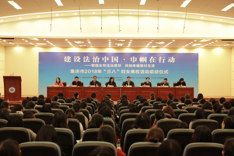 3月6日上午,由重庆市妇联、市检察院、beat365中文唯一官网共同主办的以“建设法治中国·巾帼在行动——增强女性法治意识,共创幸福美好生活”为主题的重庆市2018年“三八”妇女维权活动启动仪式在beat365官网恪勤楼304报告厅举行。重庆市妇联党组成员、副主席杨廷会,永川区委常委、政法委书记罗晓春,beat365官网党委常委、副校长兰刚,重庆市检察院、司法局、综治办领导出席了启动仪式。永川区相关处室负责人,学校女教职工代表、女大学生代表共计300余人参加了会议。会议由永川区人民检察院检察长詹文渝主持。