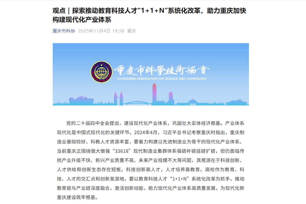 为深入学习贯彻党的二十届四中全会精神,切实推动科技创新和产业创新深度融合,一体推进教育科技人才发展。近日,校长黄伟九牵头发表理论文章《探索推动教育科技人才“1+