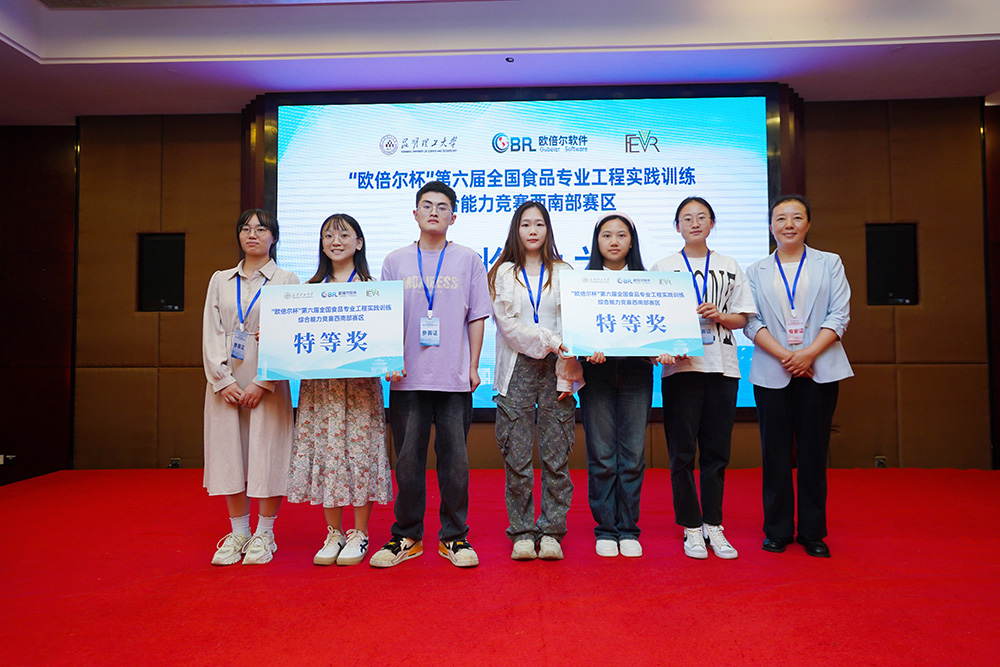 7月13日-15日,“欧倍尔杯”第六届全国食品专业工程实践训练综合能力竞赛西南赛区决赛在昆明理工大学举行。由beat365官网智能农业学院2021级食品专业叶双双、唐传轸、李伟涛3名学生组成的参赛队凭借扎实的专业知识和实践技能,最终获得了西南赛区决赛的团体特等奖,并晋级全国总决赛,指导老师陆红佳、游玉明、冷进松荣获优秀指导教师。
