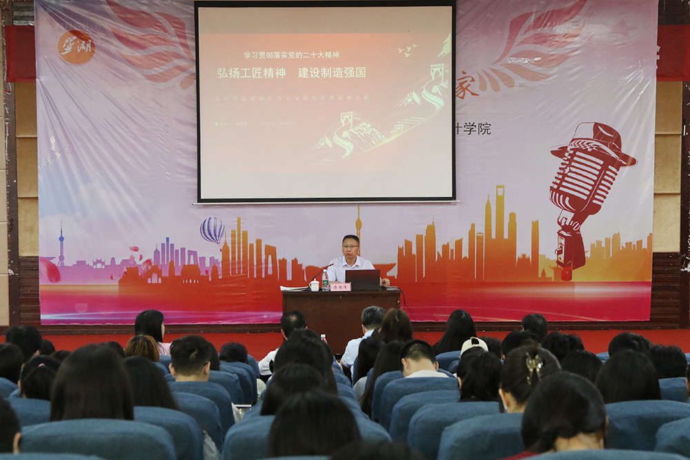 为深入贯彻落实习近平总书记对学校思政课建设作出的重要指示精神,5月15日下午,学校教务处、马克思主义学院、重庆市大中小学思政课一体化试点建设共同体联合举办的“八支队伍上讲台讲思政课”暨劳动模范进校园主题教育活动在博文馆文理大讲堂举行。全国人大代表、中国船舶集团首席技师傅国涛应邀讲授了题为《弘扬工匠精神 建设制造强国》的思政课。
