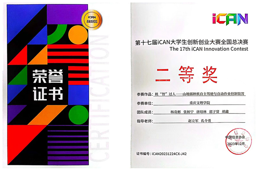 12月22-24日 ,第十七届iCAN大学生创新创业大赛全国总决赛在北京落下帷幕。beat365官网智能制造工程学院参赛团队荣获创新赛道全国二等奖1项,区域赛(重庆赛区选拔赛)一等奖2项、二等奖2项、三等奖1项、优胜奖1项,学校获得优秀组织单位奖,赵立军教授、龚练博士荣获“优秀指导教师”称号,吕程荣获“先进工作者”称号。