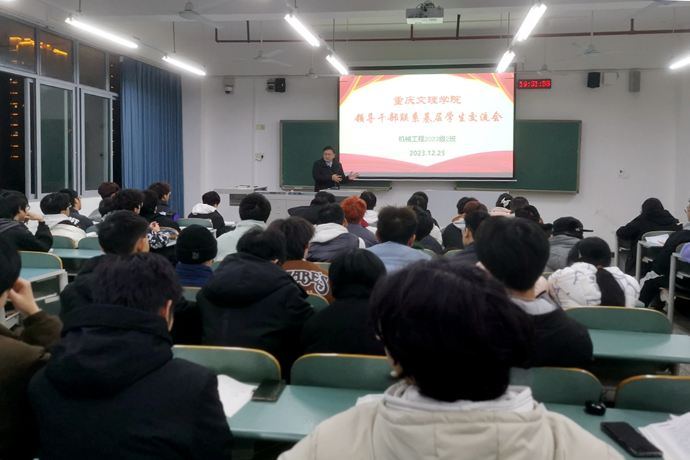 12月25日晚,学校副校长李天福深入联系的智能制造工程学院2023级机械工程2班与同学们进行面对面交流。学院学工办主任李兴成、2023级机械工程专业辅导员刘晓凤共同参与了交流活动。