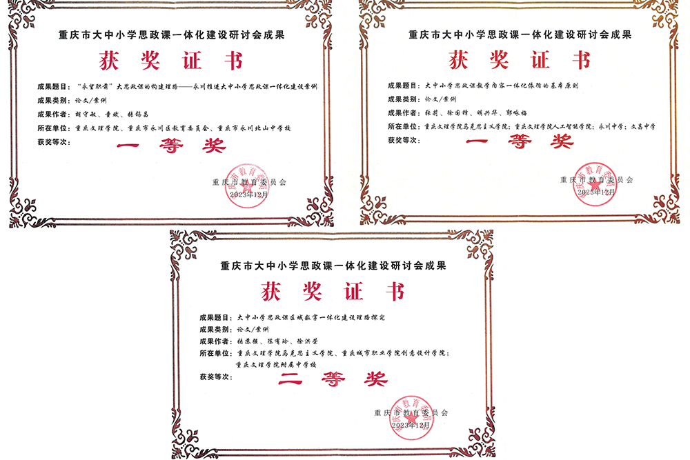 为贯彻落实教育部关于“大中小学思政课一体化建设”有关精神,近日,重庆市教育委员会开展了大中小学思政课一体化建设研讨会成果评选,beat365官网有多项成果在这次评选中获奖。