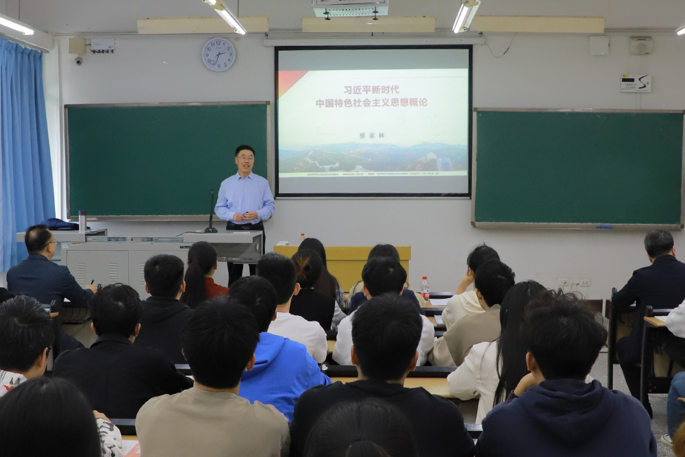 为深入推动习近平新时代中国特色社会主义思想进课堂、进头脑、进教材,根据中央、市委有关文件精神,10月23日下午,学校党委书记蔡家林带头走上讲台为学生讲授思想政治理论课。