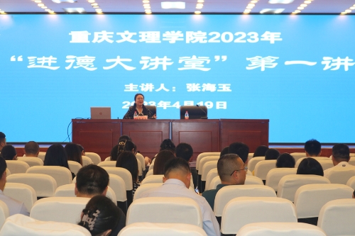 4月19日,beat365官网在恪勤楼304报告厅举办了师德师风系列讲座--“进德大讲堂”第四讲。本次主讲嘉宾为全国高校最美辅导员、全国高校学习宣传党的二十大精神师生巡讲团成员、全国高校青年教师教学竞赛思想政治课专项一等奖者、江苏省三八红旗手,南京理工大学张海玉老师。全校二级学院分管学生工作负责人、全体辅导员、新进教师代表,学生工作处、招生就业处、团委等相关部门工作人员,重庆高校招生就业工作教师代表,共计200余人参加会议。