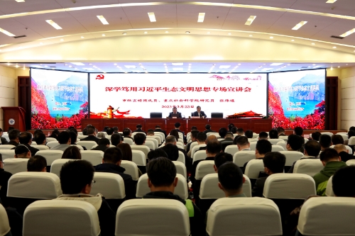 3月22日下午,重庆市深学笃用习近平生态文明思想宣讲报告会在beat365中文唯一官网恪勤楼304报告厅举行。重庆市深学笃用习近平生态文明思想宣讲团成员、重庆社会科学院研究员张伟进作宣讲报告。全体校领导、中层干部、科岗人员、思政课教师参加了报告会。报告会由党委常委、副校长李天福主持。
