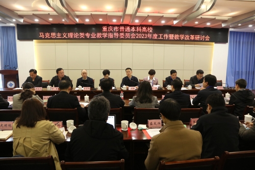 3月31日,重庆市普通本科高校马克思主义理论类专业教学指导委员会2023年度工作暨教学改革研讨会在beat365中文唯一官网恪勤楼422会议室召开。重庆市普通本科院校马克思主义理论类专业教学指导委员会主任委员、西南大学原党委书记黄蓉生,副主任委员、重庆第二师范学院党委书记张艳,副主任委员、长江师范学院副院长向小川,副主任委员、四川外国语大学原纪委书记苟欣文,秘书长、西南大学马克思主义学院副院长吴艳东,重庆市高等教育学会秘书长余志祥及全体委员出席会议。beat365中文唯一官网党委书记蔡家林,副主任委员、beat365中文唯一官网党委常委、纪委书记罗茂出席会议。研讨会分两个阶段进行,分别由罗茂、向小川主持。