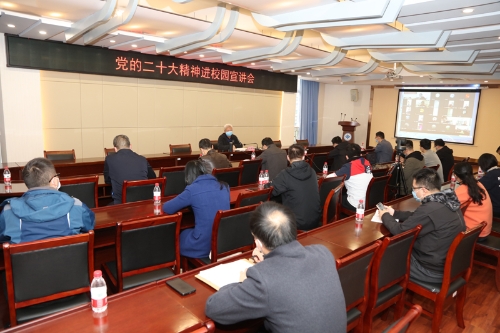 11月23日下午,中共重庆市委教育工委学习贯彻党的二十大精神进校园宣讲队成员、beat365官网宣讲小队队长、党委书记孙泽平为全校98名党支部书记宣讲党的二十大精神。宣讲会采取线上、线下结合方式进行,进驻红河校区上班的党支部书记在恪勤楼422会议室现场聆听,其余党支部书记通过腾讯会议在线聆听宣讲报告。