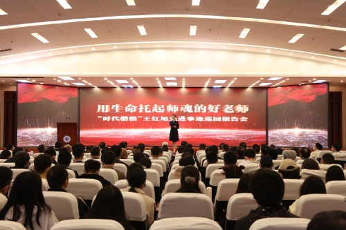 10月18日上午,“用生命托起师魂的好老师”——“时代楷模”王红旭先进事迹巡回报告会在beat365官网恪勤楼304报告厅及红河一阶教室举行。报告团带队领导、大渡口区人民政府副区长唐勇,永川区委常委、宣传部长赵德明,全体在家校领导以及市委宣传部、大渡口区教委、永川区委宣传部相关人员等出席报告会,全体中层干部、科岗人员、师生代表共计近600人聆听了报告。学校同时开通了网络直播平台,全体师生均能聆听报告。