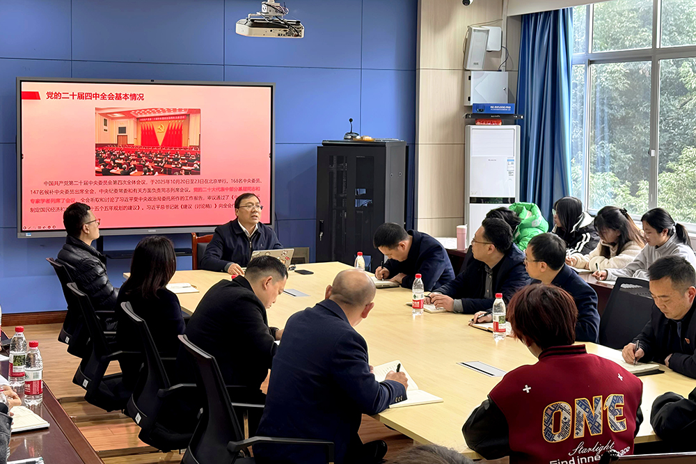 12月17日下午,学校党委常委、副校长王东强在知津楼C303会议室宣讲党的二十届四中全会精神。
