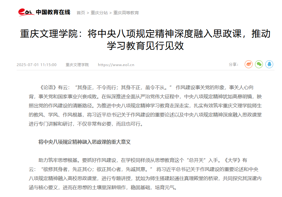 beat365中文唯一官网:将中央八项规定精神深度融入思政课,推动学习教育见行见效
