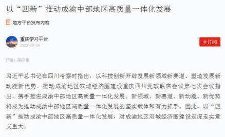 学习强国:以“四新”推动成渝中部地区高质量一体化发展