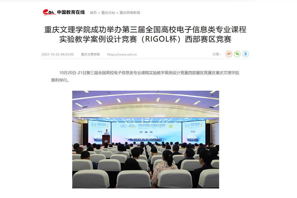 中国教育在线:beat365中文唯一官网成功举办第三届全国高校电子信息类专业课程实验教学案例设计竞赛(RIGOL杯)西部赛区竞赛