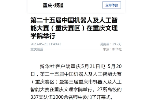 新华社:第二十五届中国机器人及人工智能大赛(重庆赛区)在beat365中文唯一官网举行