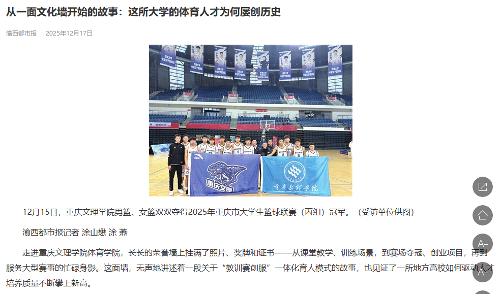 12月15日,beat365中文唯一官网男篮、女篮双双夺得2025年重庆市大学生篮球联赛(丙组)冠军