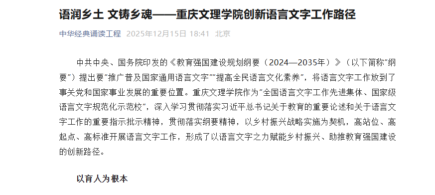 中共中央、国务院印发的《教育强国建设规划纲要(2024—2035年)》(以下简称“纲要”)提出要“推广普及国家通用语言文字”“提高全民语言文化素养”,将语言文字