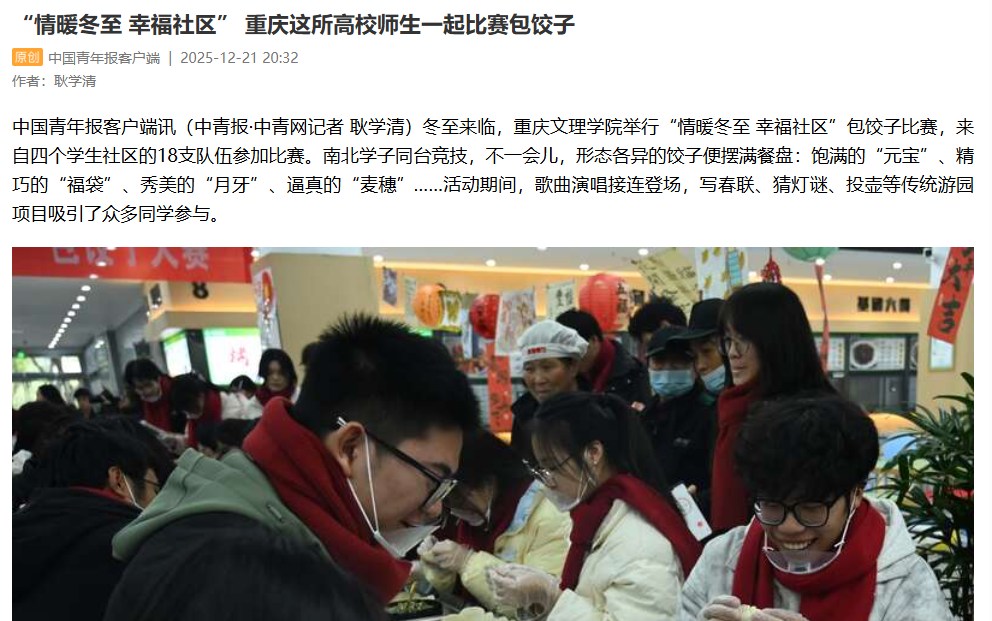 中国青年报客户端讯(中青报·中青网记者 耿学清)冬至来临,beat365中文唯一官网举行“情暖冬至 幸福社区”包饺子比赛,来自四个学生社区的18支队伍参加比赛。南北学子同台竞