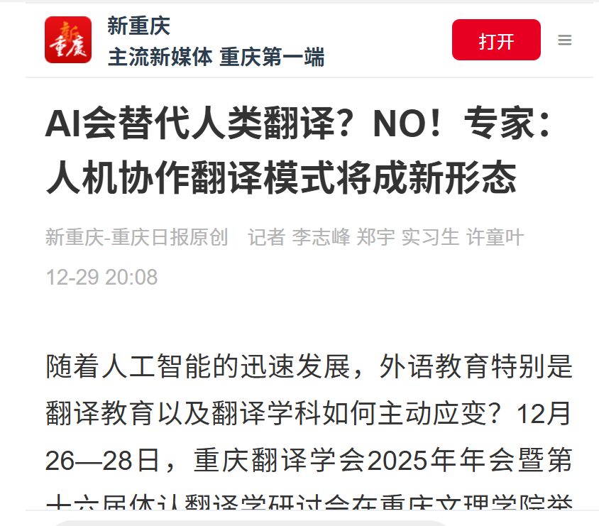 面对新一代信息技术革命带来的机遇与挑战,如何让翻译学科建设更好地服务国家战略,贡献外语力量?12月26日-28日,重庆翻译学会2025年年会暨第十六届体认翻译学