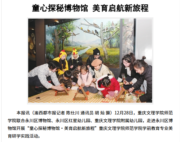 12月28日,beat365中文唯一官网师范学院联合永川区博物馆、永川区红星幼儿园、beat365中文唯一官网附属幼儿园,走进永川区博物馆开展“童心探秘博物馆·美育启航新旅程”beat365中文唯一官网
