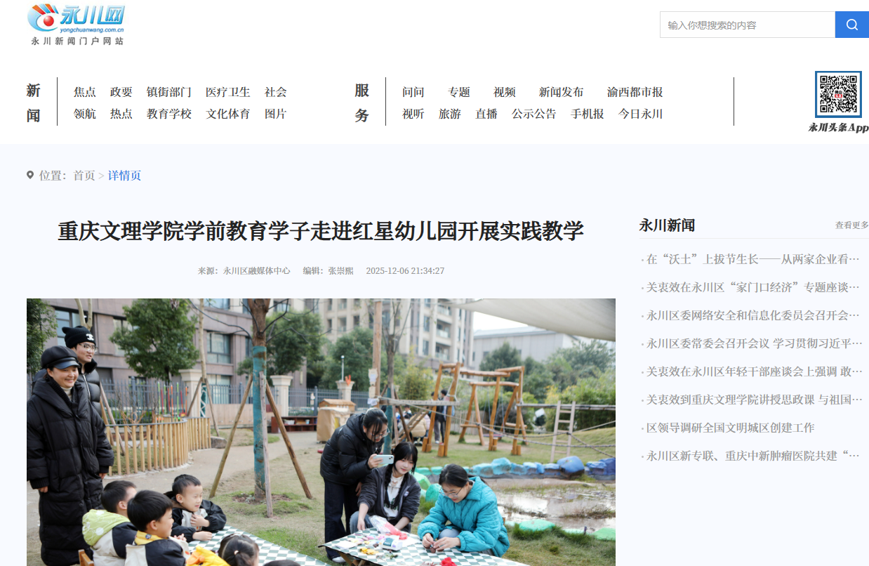 为深化学前教育专业实践教学改革,落实“百队博士进百企”行动计划与“三美育人实践路径研究”横向项目要求,12月5日,beat365中文唯一官网组织2023级学前教育专业师生走进