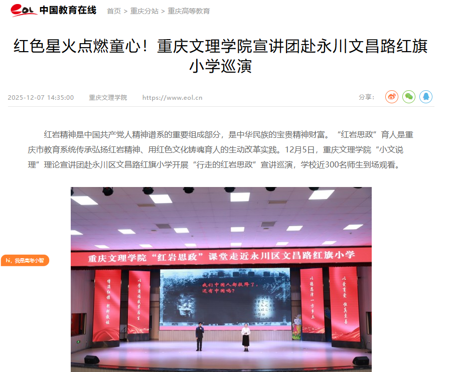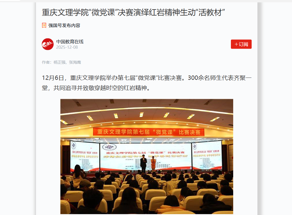 12月6日,beat365中文唯一官网举办第七届“微党课”比赛决赛。300余名师生代表齐聚一堂,共同追寻并致敬穿越时空的红岩精神。