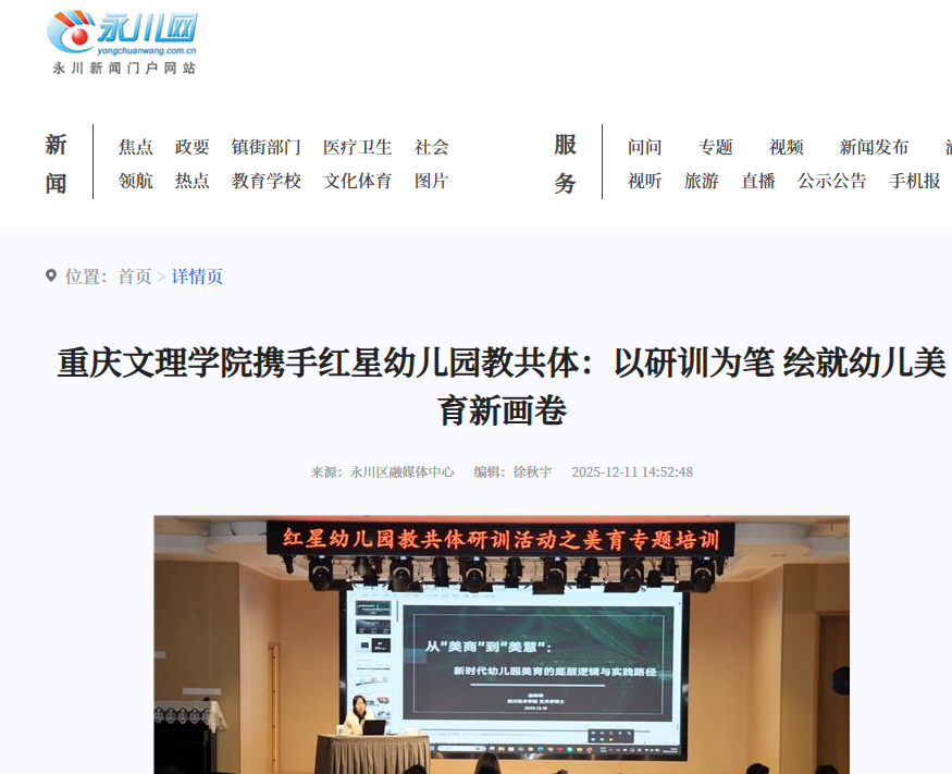 12月10日晚,beat365中文唯一官网联合永川区红星幼儿园教共体,共同举办“从美商到美育:新时代幼儿园美育的底层逻辑与实践路径”专题研训活动。