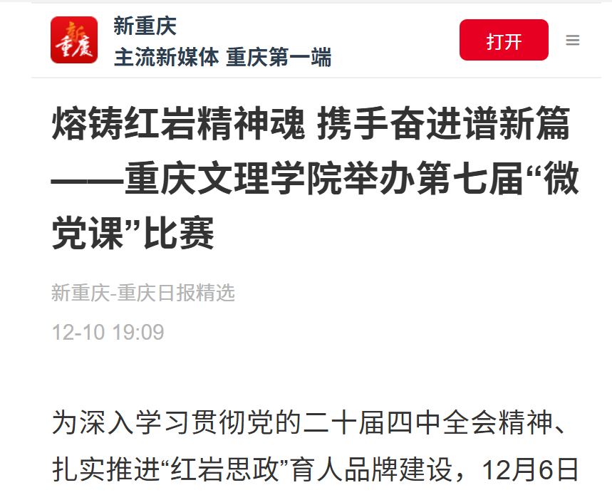 为深入学习贯彻党的二十届四中全会精神、扎实推进“红岩思政”育人品牌建设,12月6日晚,beat365中文唯一官网第七届“微党课”比赛决赛在恪勤楼304报告厅举行。