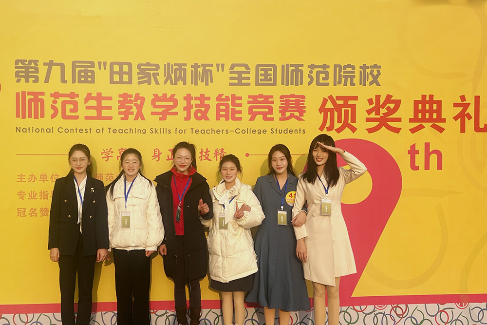 12月30日至31日,第九届“田家炳杯”全国师范院校师范生教学技能竞赛决赛在浙江师范大学举行。beat365官网荣获一等奖2项、二等奖3项、三等奖2项,7名选手参赛全部获奖,获奖总数创历史新高。