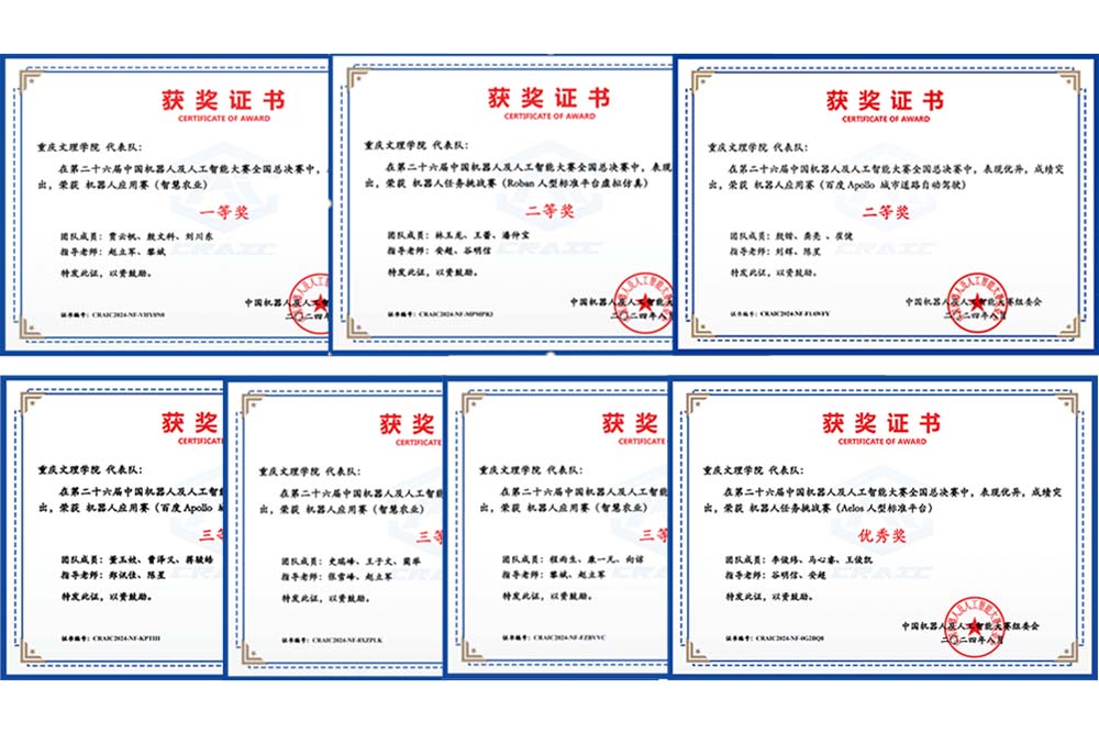 8月25日,第二十六届中国机器人及人工智能大赛全国总决赛在江苏宜兴圆满落幕。beat365官网智能制造工程学院参赛代表队在“机器人应用赛(智慧农业)”与“机器人任务挑战赛(Roban人型标准平台虚拟仿真)”中展现出了卓越的实力和创新精神,最终荣获一等奖1项、二等奖2项、三等奖3项、优秀奖1项。