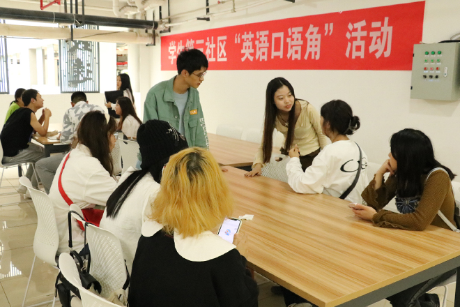 为全面推动学校学生社区治理工作落实落细、见行见效,外国语学院于近日在书香观云社区活动中心启动 “英语口语角”活动。学校纪检监察室、审计处、党委学生工作部,学院领导、相关教师及学生代表50余人参加了启动仪式。