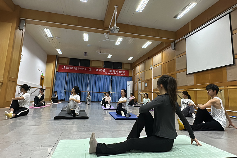 为丰富学生社区生活,减轻日常学习压力,培养学生审美情趣,11月9日晚,由沐歌星湖学生社区党支部联合音乐学院承办的第一期“蓝花楹”美育小课堂——瑜伽体验课在星湖校区活动中心三楼开课,来自沐歌星湖社区各学院近20位同学参与活动。