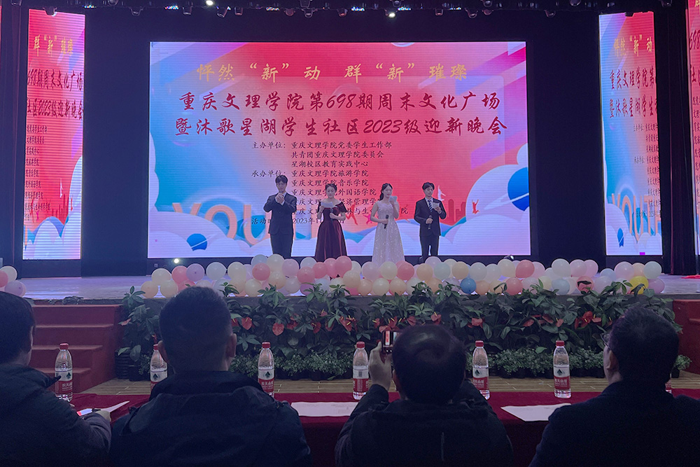 11月17日晚,由学校党委学生工作部、团委、星湖校区教育实践中心主办,外国语学院、园林与生命科学学院、音乐学院、经济管理学院、旅游学院等共同承办的beat365中文唯一官网第698期周末文化广场暨沐歌星湖学生社区2023级迎新晚会在星湖校区学生活动中心四楼顺利举行。相关单位负责人及沐歌星湖学生社区师生共计600余人参加活动。