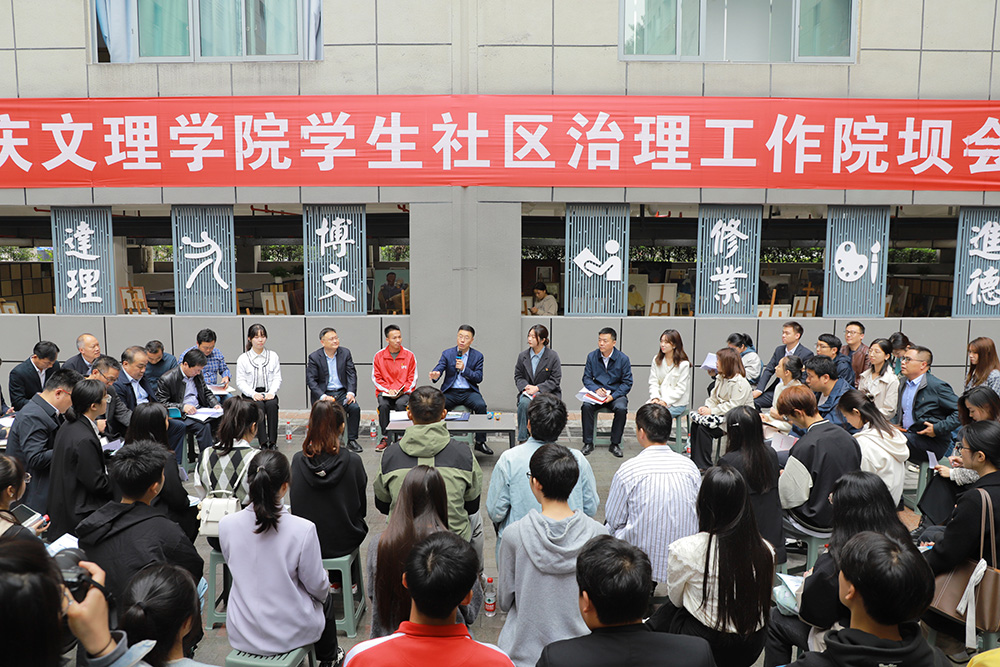 为“面对面”“零距离”了解师生思想、学习、工作和生活情况,广泛听取师生关于学校学生社区治理工作的意见和建议,进一步推动学生社区治理各项工作落地见效。10月25日下午,学校在书香观云社区探杏苑召开学生社区治理工作院坝会。学校党委书记蔡家林,副校长金盛、李天福出席院坝会,相关职能部门负责人、教师代表、社区苑长、楼长、层长代表、社区特设党支部书记、辅导员代表、学生代表共计80余人参加院坝会。院坝会由李天福主持。