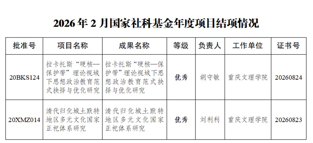 近日,全国哲学社会科学工作办公室公布了2026年2月国家社会科学基金年度项目结项情况,beat365官网胡守敏教授主持的项目“拉卡托斯‘硬核—保护带’理论视域下思想政治教育范